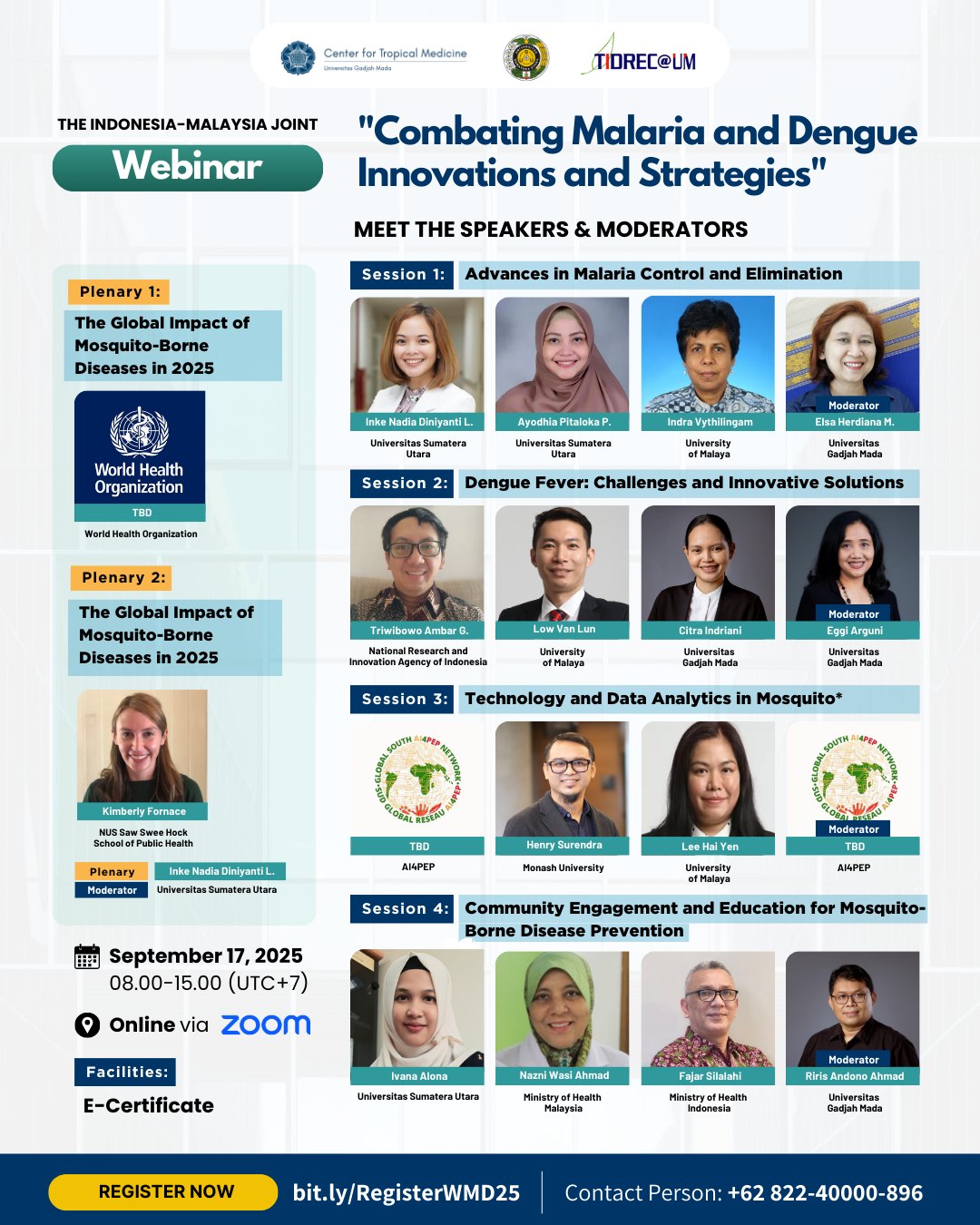 Join us on 17 Sept 2025 (08.00–15.00 WIB) for an international webinar on “Combating Malaria and Dengue: Innovations and Strategies”.